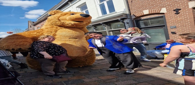 Dit is een volwaardige zeer opvallende animatie act waarbij zowel het karakter en zijn begeleider(s) interactief met zijn publiek omgaat ... komisch, vertederend maar vooral knuffelbaar waar echt iedereen mee op de foto wil.